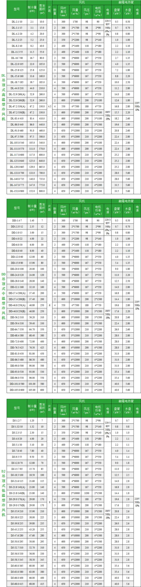 DL型适用于0°C保鲜库,DD型适用于-18C低温冷藏库,DJ型适用于- 25°C速冻库。