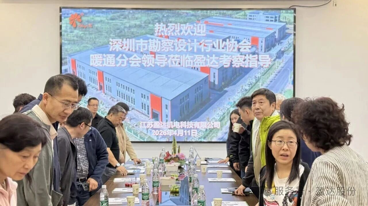 4月11日,盈达江苏分公司迎来了一场高规格的行业交流活动。深圳市勘察设计行业协会暖通分会领导一行莅临盈达开展参观指导工作。双方以产线考察与专题研讨为纽带,就暖通领域技术创新与绿色发展议题进行了深入交流,为盈达暖通技术升级提供了切实可行的实践指引。